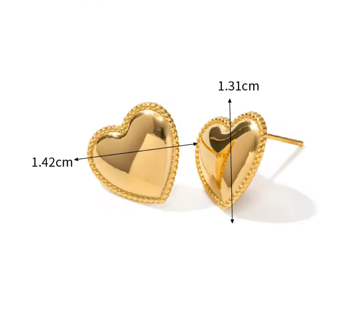 Aretes studs de corazón pulido con borde texturizado. Un diseño clásico y femenino que aporta un toque sutil y encantador al look diario.