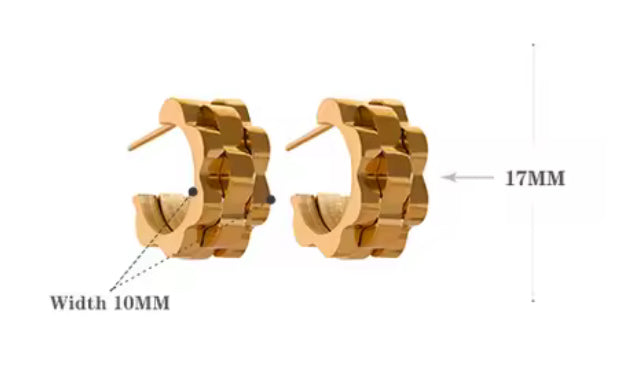 Aretes con diseño de eslabones anchos. Estilo bold y textura en volumen tipo cadena.
