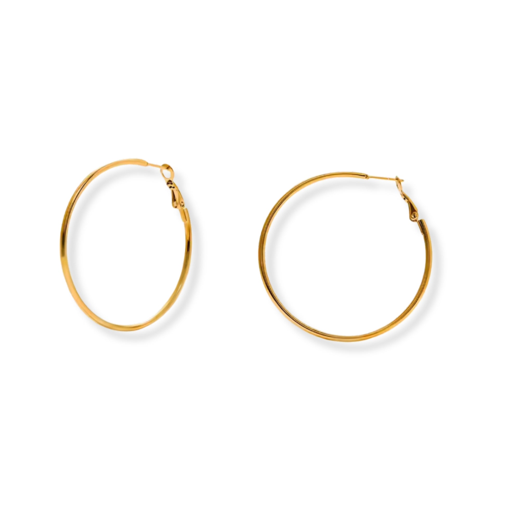 El diseño esencial que nunca pasa de moda. Argollas ligeras y minimalistas en acabado dorado de alto brillo, ideales para combinar con cualquier estilo y ocasión.