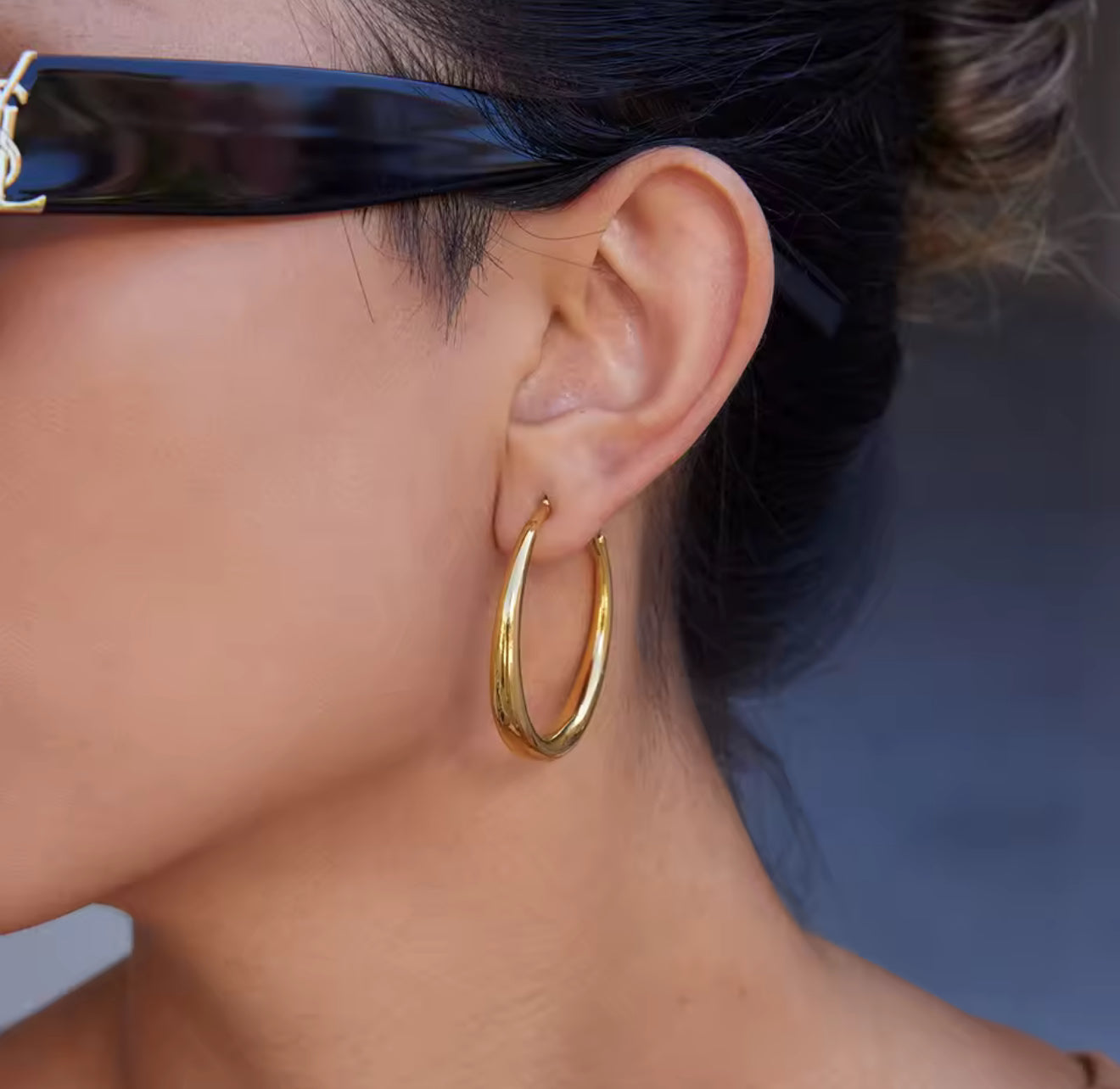 Argollas de diseño clásico con acabado pulido espejo en dorado, ideales como pieza básica y atemporal en cualquier colección. Su estructura ligera y su cierre de seguridad aseguran comodidad y resistencia para el uso diario sin perder elegancia. Son livianos