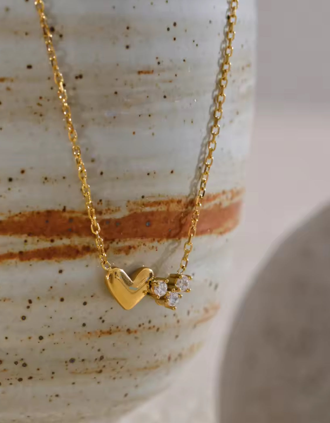 Collar con dije en forma de corazón pulido y detalle lateral de circonias en engaste brillante. Cadena fina ajustable de diseño minimalista.