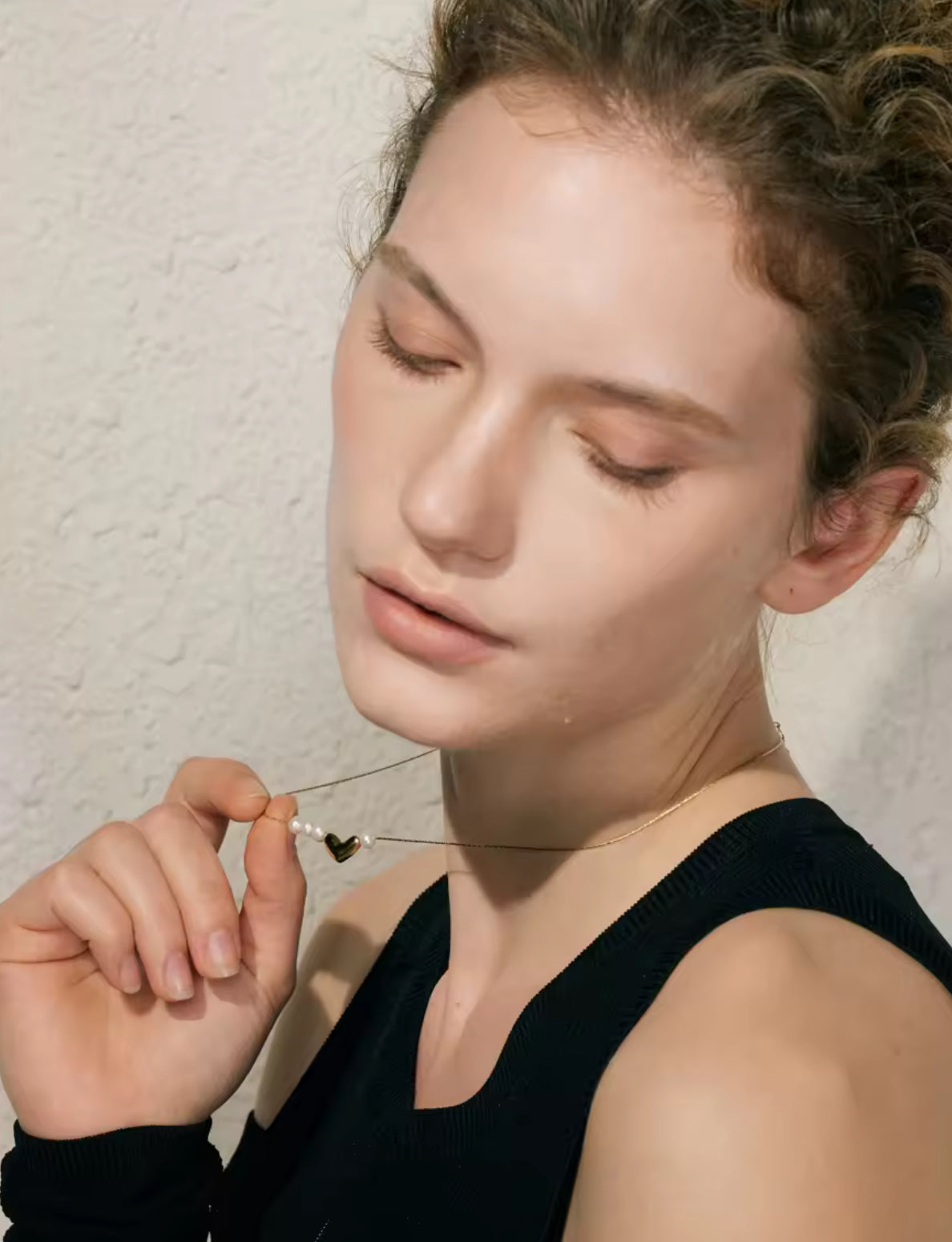 Collar con dije central en forma de corazón pulido, acompañado de perlas cultivadas barrocas dispuestas lateralmente. Diseño minimalista y romántico que combina elegancia moderna con el brillo natural de las perlas.