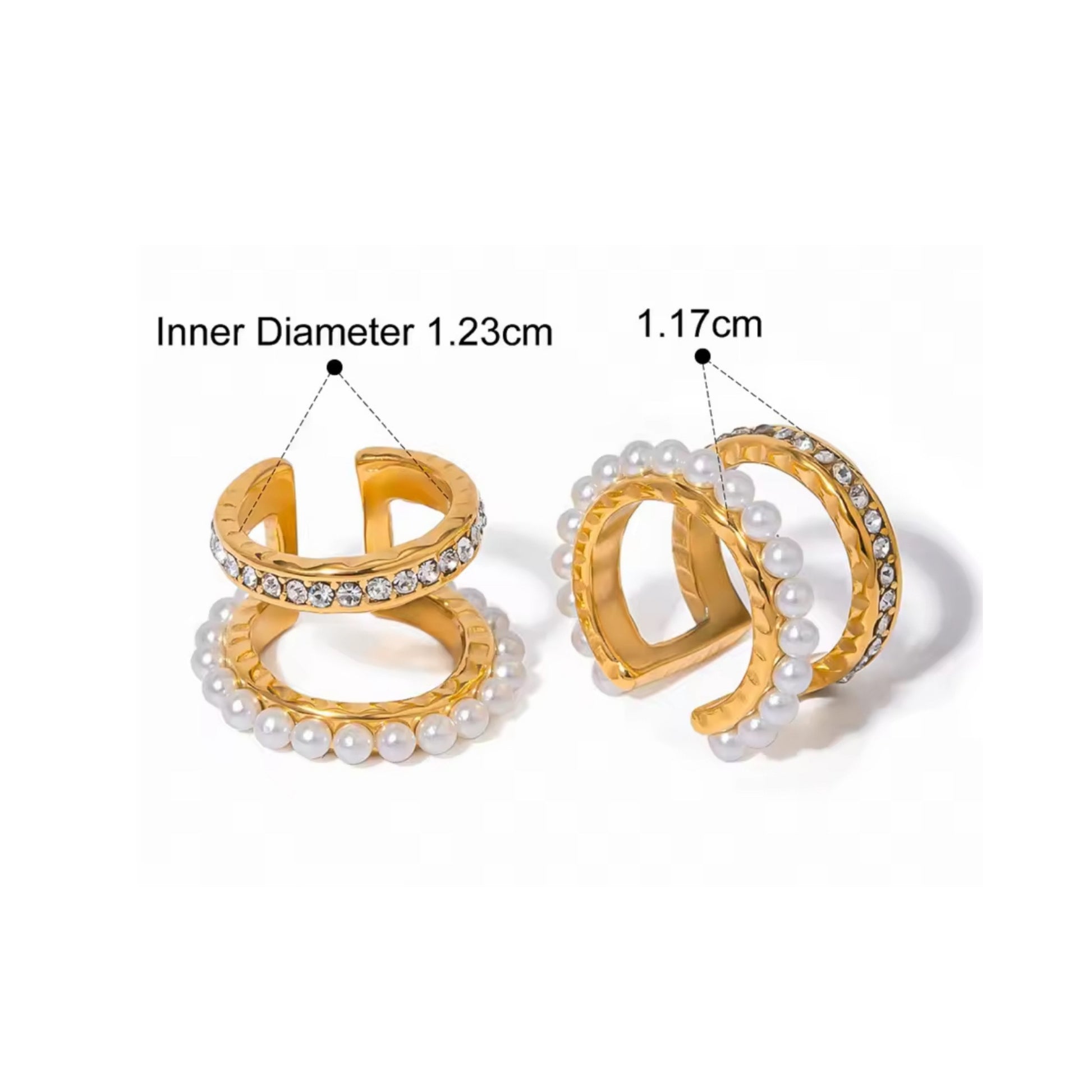 Un diseño doble que combina el brillo elegante de las circonias con la delicadeza clásica de las perlas. Un toque moderno y sofisticado para realzar tu estilo sin necesidad de perforación.
